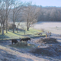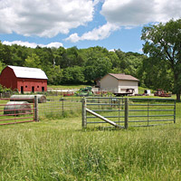 Free access to shelter, clean water which is heated during the winter and grazing. 10 of our 90 acres include laydown area with two round bail feeding stations and a three sided shelter. Two pastures for turn out Round pin Barn provides two stalls with walk outs for horses that need special attention